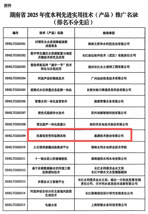 基康手艺机械视觉变形监测系统入选湖南省水利