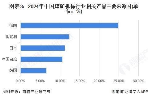 煤矿机械行业相关产物次要从进口来历国度或地域有、奥地利、日本、中国、韩国等,此中2024年从进口的煤矿机械相关产物金额为1。64亿美元,进口金额为8170万美元,占比12。43%。