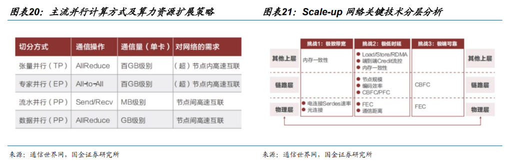 Scale-up 取 Scale Out 持续拓展。大模子需要采用多机多卡集群的体例进行锻炼,支流的并行锻炼体例无数据并行、模子并行(张量并行、流水线并行)、专家并行等。张量并行和专家并行的并行计较体例,每次迭代数据量达几百 GB,GPU 互联需要高带宽和极低时延,以压缩 GPU 之间的通信开销成本。跟着大模子参数规模指数级增加,单卡无效算力难以应对超大规模的算力需求,高带宽、低延迟的两头互连手艺成为环节合作要素,对 GPU 集群互连拓扑布局也提出了更高要求,驱动了纵向扩展(Scale-up)取横向扩展(Scale-out)收集架构的手艺演进。