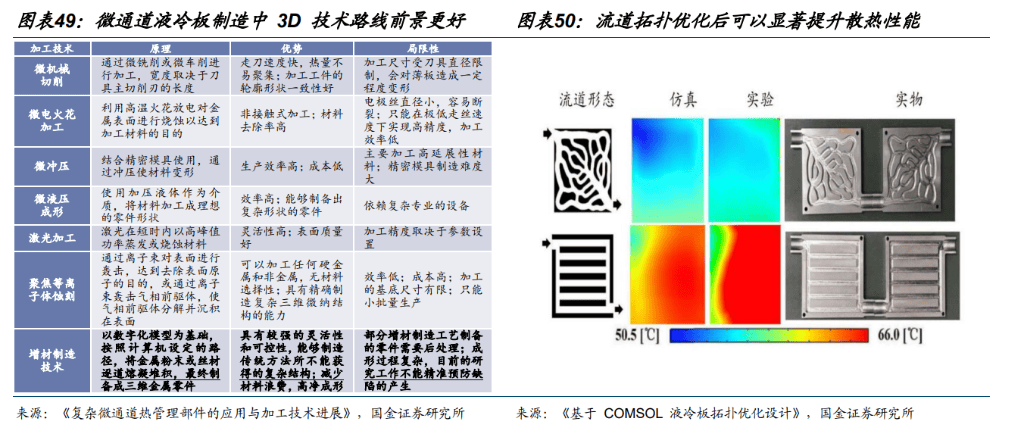 AI 大迸发,3D 打印赋能微通道处理散热痛点。跟着AI 芯片功率密度迸发式增加,具备极高换热效率的微通道液冷方案需求火急,然而保守铲齿、CNC 及焊接工艺正在制制微通道(深宽比大、几何布局复杂且曲径低于1mm 的)时,受限于加工道理无法实现精细复杂流道成型,又因焊接工序额外引入热阻存正在泄露风险,难以婚配AI 芯片立异节拍,亟需3D 打印帮力冲破制制上限。3D 打印完全解放了流道设想,其无需模具取焊接的一体化成型能力,可间接制制保守工艺无法企及的拓扑优化、仿生叶脉状等复杂流道,大幅添加换热概况积并优化流体动力学机能,同时通过微米级细密制制,能从根源上消弭焊接带来的热阻取泄露现患,提拔布局强度,完满适配新一代AI 芯片对极致散热机能的刚性需求。