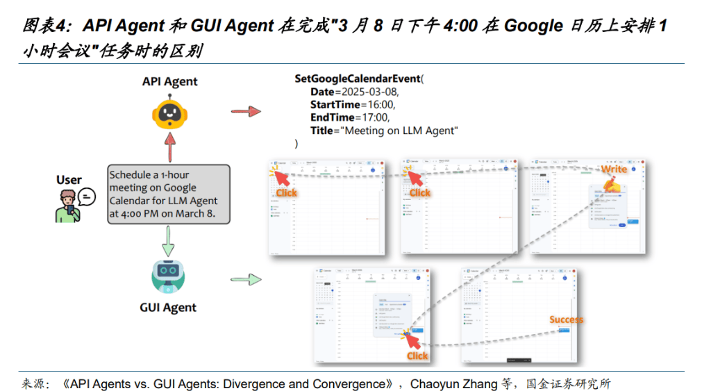 正在效率、现私、靠得住性等方面 API Agent 更有劣势,可是 GUI Agent 的最焦点劣势正在于矫捷通用,不需要使用厂商自动顺应,是打通碎片化使用生态的利器。估计模子厂商、使用厂商和手机厂商为了掠取流量入口,会正在两种线选择长进行激烈的博弈。