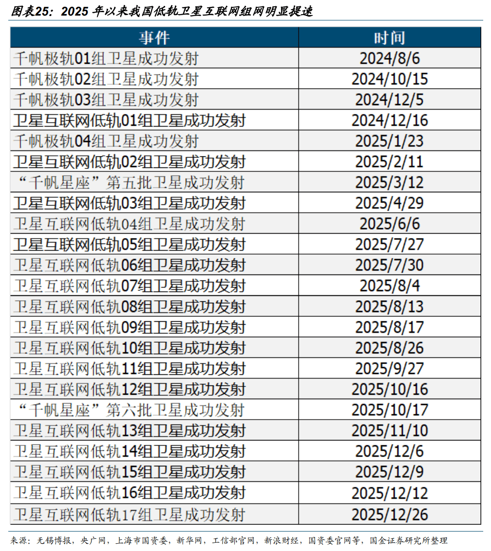 2025年以来我国低轨卫星组网速度较着提速,后续无望进一步加速组网节拍。千帆星座初次组网于2024年8月起头,GW星座于2024岁尾起头组网,通过统计发觉2025年我国两大星座组网显著加快,截至2025年12月26日,GW星座2025年合计成功发射16组低轨卫星。我们认为,因为轨道资本稀缺,后续我国卫星组网速度无望进一步加快。