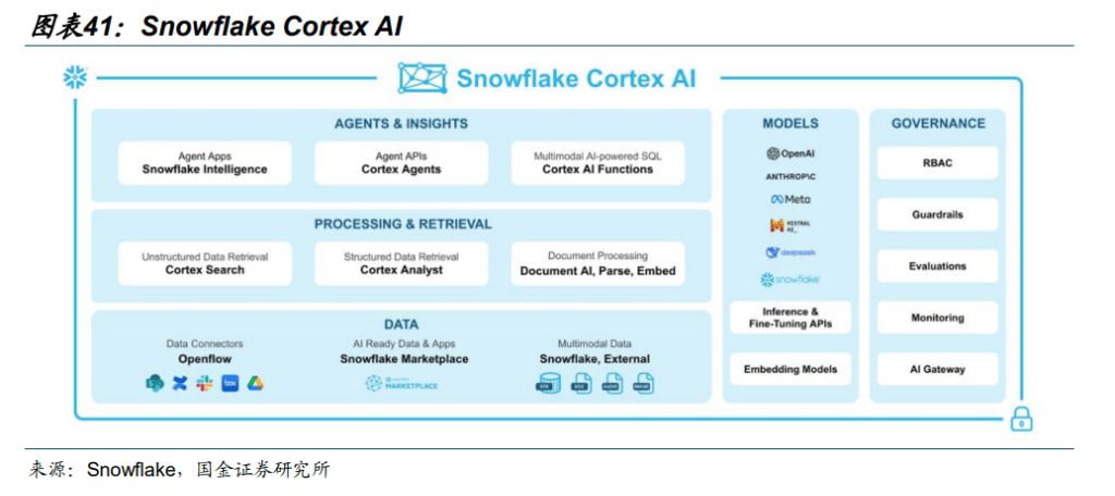Snowflake Cortex:原生AI 和机械进修套件,间接建立于Snowflake 平台之中。它利用户可以或许操纵Snowflake 数据运转高级AI 模子,而无需迁徙数据或设置装备摆设零丁的根本设备。