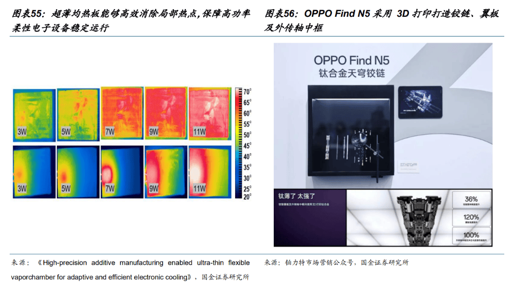 端侧AI时代,3D打印能加强热办理取定制化,跟着AI大规模正在手机及AIPC等挪动端落地,芯片瞬时高算力激发的热流密度激增取设备极板轻薄化的空间构成矛盾,3D打印手艺可以或许制制出保守冲压或触动工艺无法实现的,顺应异形软管空间的超薄均热板,通过建立复杂的内部三维毛细布局大幅提拔被动散热效率,保障端侧AI的不变运转;另一方面,针半数叠屏子机较温柔性布局件的高强度合金布局的趋向,3D打印有较大规模了钛合金材料保守CNC加工良率低、刀具磨损大且难以切削复杂内腔的难题,实现了较轻量钢带部件的一体化成型取拓扑减沉,正在满够数十万次折叠寿命的同时也为电池了贵重的维生空间,成为高端3C产物迈向轻量化取耐用性均衡的必选方案。